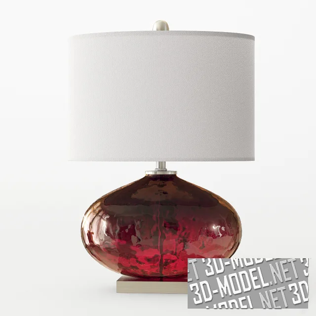 Настольный светильник в нео-классическом стиле Uttermost Tyrian. Лампа со стеклянным, темно-красным сосудом в основании, на квадратной подставке и хромированной стойке. Абажур тканевый, белого цвета.