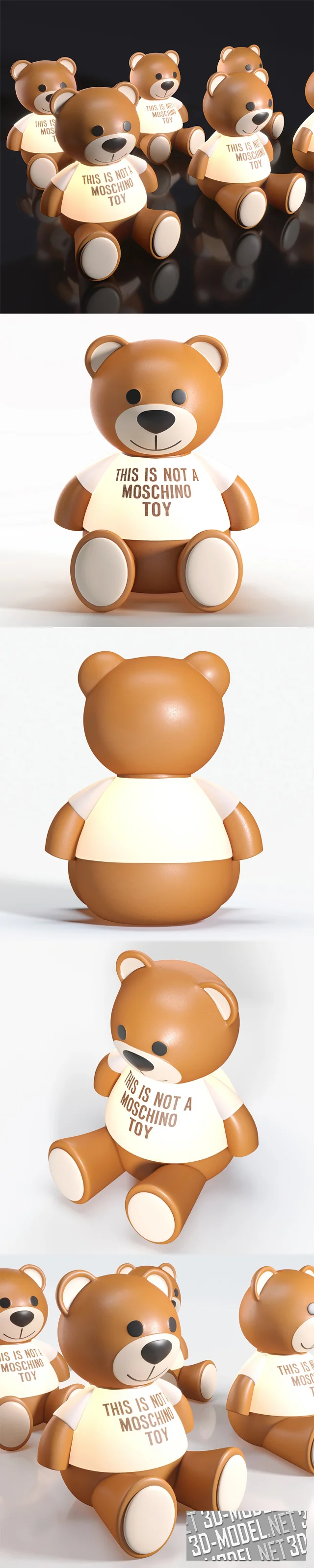 Декоративный настольный светильник в форме плюшевого медведя, созданный в результате коллаборации итальянского бренда мебели и дизайна Kartell и модного дома Moschino. Лампа выполнена в виде сидящего коричневого медведя с белой футболкой. На футболке размещена ироничная надпись: "THIS IS NOT A MOSCHINO TOY" («Это не игрушка Moschino»), что является игрой слов и отражает игривый стиль обоих брендов.