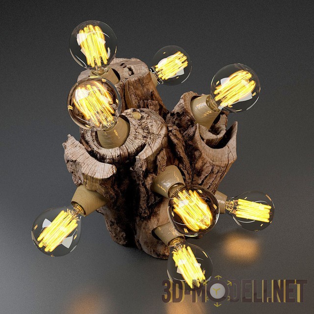 Очень необычный светильник, выполненный в форме пня. Вместо веток у него «растут» ретро-лампы, что делает этот источник света очень аутентичным и оригинальным. Прекрасное сочетание натурального дерева и лампочек в стиле ретро делают эту 3D модель предпочитаемым светильником для различных интерьеров. Можно использовать и в качестве настольного, и как напольный источник света. Текстуры присутствуют в архиве, там же находится файл 3D Studio Max 2013.