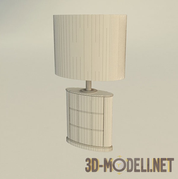 3D-модель лампы для стола, прикроватной тумбы и других поверхностей, от производителя Formitalia. Размер светильника 32 х 61 см. Отделка нежного, бежевого цвета и оттенка слоновой кости, классический силуэт лампы и брутальность кожи создают одновременно традиционный и нетривиальный образ для такого источника света, как настольный светильник.