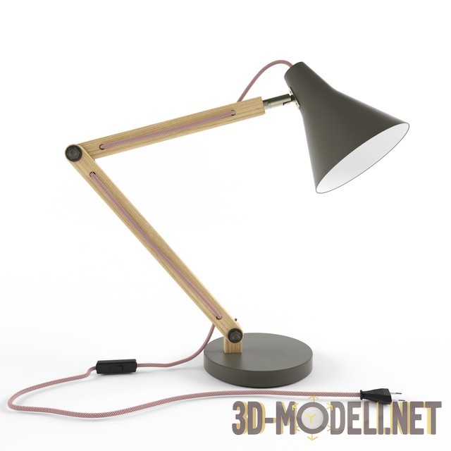 3D-модель настольной лампы Rex Grey от компании Crate&Barrel. Дерево, сталь и мягкая серая отделка создают простой и выразительный дизайн. освещения. Чистый серый цвет светильника хорошо контрастирует с блеском регулируемой деревянной рамы. Бросающийся в глаза шнур, обтянутый красной и белой тканью, создавая нужный акцент. Лампа будет отлично смотреться на современном рабочем столе.