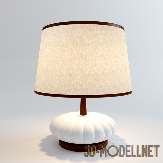 3D-модель настольной лампы Mid Century Modern. Красивый светильник, изготовленный из белой керамики и ореха в качестве основания, имеет очень привлекательный вид. Мягкая глазурь с полу-матовой отделкой хорошо контрастирует с теплым деревом. Лампа способна создать винтажную атмосферу в помещении, очень украсив его.