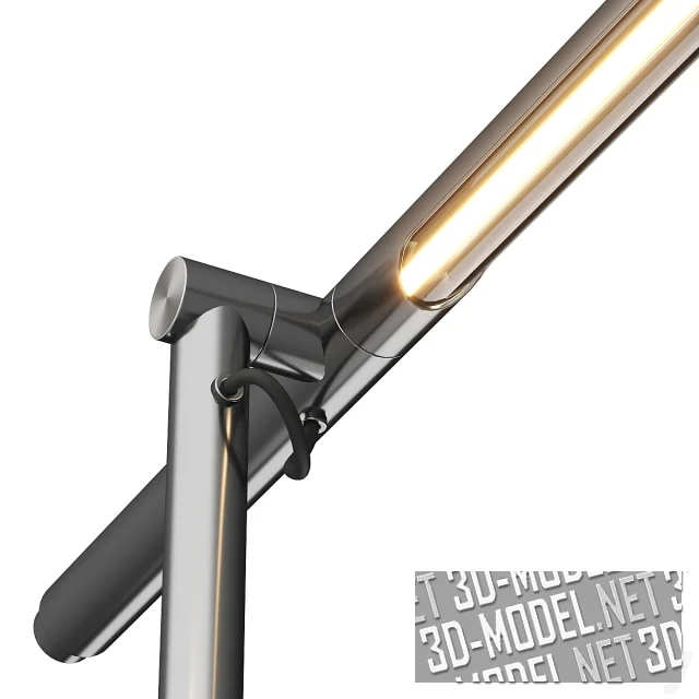 Современный напольный светильник Brazo Pablo Pardo (габарит: 122х21,5х67,5см). Горизонтальная штанга со встроенной лампой шарнирно закреплена на вертикальной высокой металлической стойке с круглой подставкой. Материал отделки металлических элементов представлены в трех вариантах: матовое серебро, золотистый, темное матовое серебро.