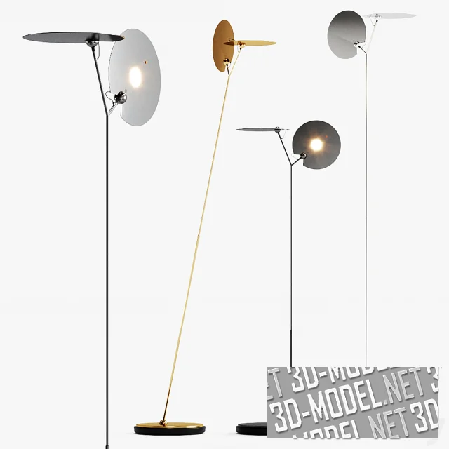 Торшер доступен в таких вариантах отделки: черный металл, алюминий или бронза.