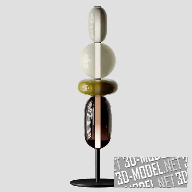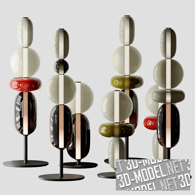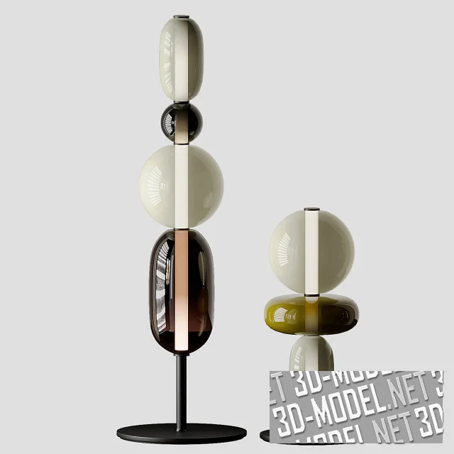 В основе дизайна – гладкая галька с летнего пляжа или напоминание о ком-то другом, но не менее особенном. Разнообразие форм и цветов вдохновило эту коллекцию, позволяющую создавать неповторимые комбинации. Элементы из выдувного стекла ручной работы, словно разноцветные бусины, соединенные внутренним источником света, нанизаны на основание, что формирует оригинальный источник света. Высота светильника составляет 132,71 см.