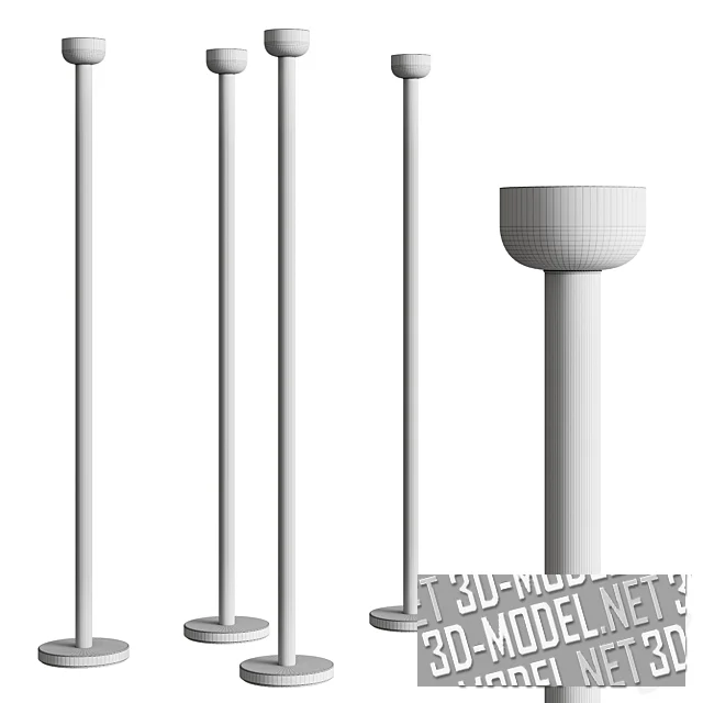 Минималистичный торшер Bellhop от фабрики Флос. На небольшой круглой площадке белого цвета смонтирована высокая гладкая труба с небольшой белой чашей плафона в верхней части. Стойка представлена в четырех цветах: черном, белом, оранжевом и бледно-зеленом. Световой поток направлен в потолок, создавая комфортное локальное освещение в интерьере. Габарит светильника - d26см/h178см.