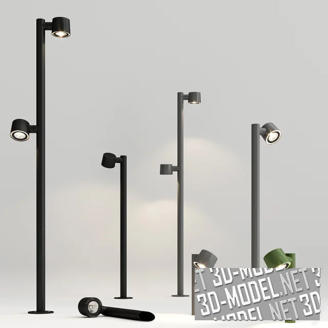 Современные садовые (уличные) светильники в современном, минималистичном стиле - Clic от Lombardo. В коллекции представлены три модели: Clic Garden (с невысоким столбиком в 30,3 см), Clic Garden 40 H1000 (с одной лампой на метровом столбике с площадкой), Clic Garden 40 H1500 (светильник с двумя лампами на полутораметровом столбе с площадкой).