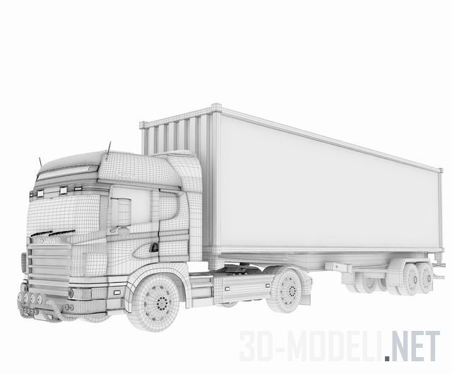 Несколько вариантов тюнингованной модели современного грузовика Scania R420. Представлены модели без прицепа и с контейнером на платформе, с черной, белой и цвета хаки кабинами, с прожекторами на нижних хромированных «кенгурятниках», с аэрографией на боковых стенках кабины.