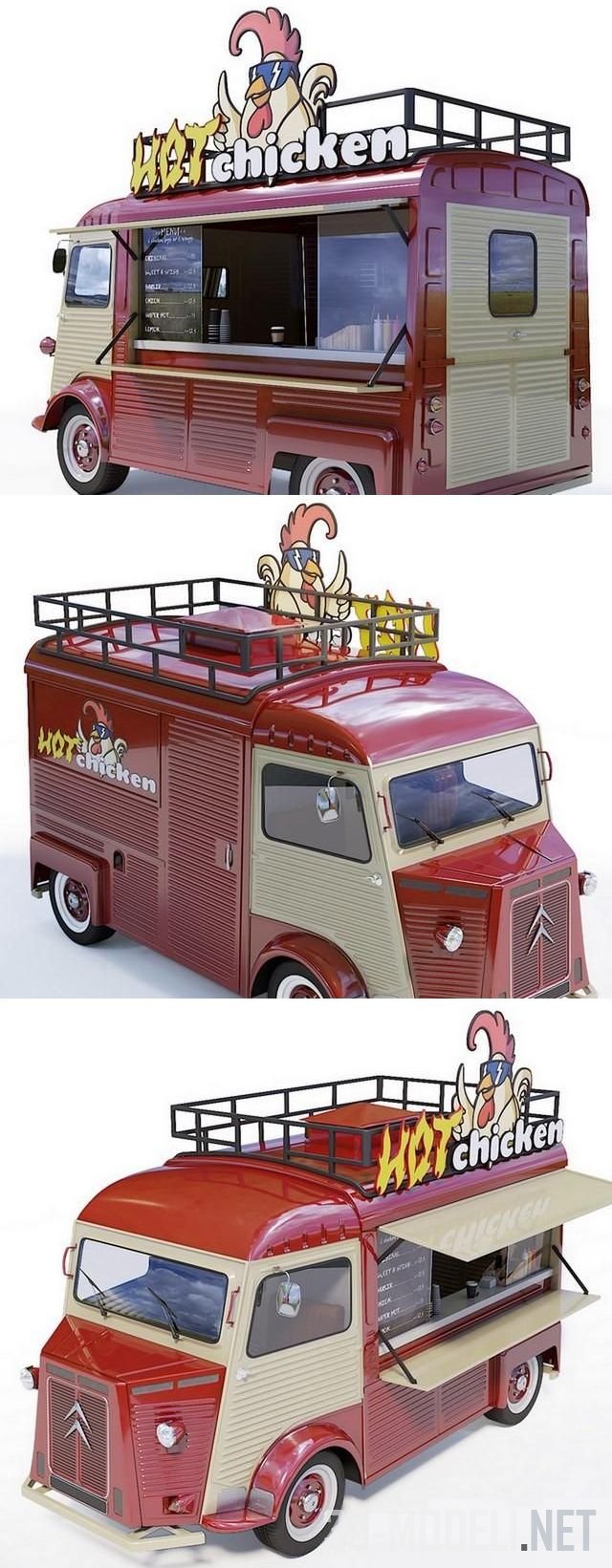 Продовольственный грузовик, созданный на базе фургона Citroen Type H, серийно выпускавшегося в 1947–81 годах. Модель высокого качества, разбита на логические объекты (фуд-фургон, рекламный декор, кухонное оборудование и посуда), все названия объектов и материалы - латинские.