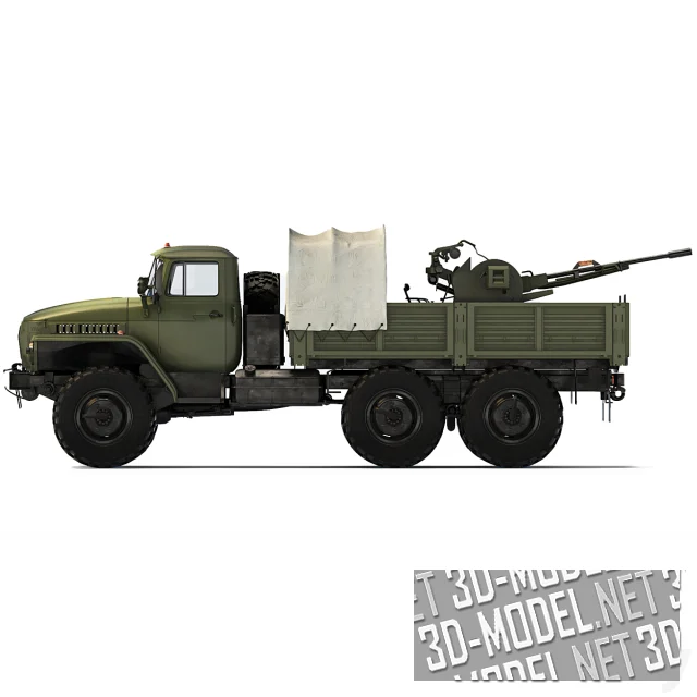 Урал 4320 ZU-23-2 1998 года представляет собой классический трехосный армейский грузовик высокой проходимости, на платформе которого установлен зенитный автоматический комплекс ЗУ-23-2. Массивная рама, крупные внедорожные шины, характерная кабина с вертикальной решеткой радиатора и тентованным кузовом передают узнаваемый образ, рассчитанной на работу в тяжелых климатических и дорожных условиях. На корме кузова смонтирована спаренная 23-мм установка с поворотной платформой, прицельными приспособлениями и сиденьями расчета, что делает модель особенно выразительной в любых военных и технико-исторических сценах.