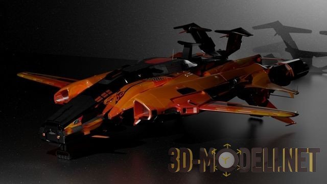 Трехместный звездолёт Orca из компьютерной игры Starcitizen, от разработчиков фирмы Aegis. Корабль с хищными очертаниями выполнен в оранжево–чёрном сочетании с тщательной проработкой деталей: шасси, сопла двигателей, узкие крылья, стабилизаторы, кабина. Формат: Maya 2017, рендер: Arnold.