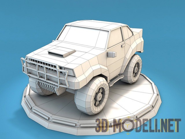 3D-модель была создана в современном стиле с острыми формами и имеет уровень детализации и дизайн кузова, как настоящий гоночный джип для ралли. Основными особенностями 3D-модели являются решетка бампера и большие колеса. Также низкополигональный джип имеет UV-развертку и готов к использованию в игровых движках.