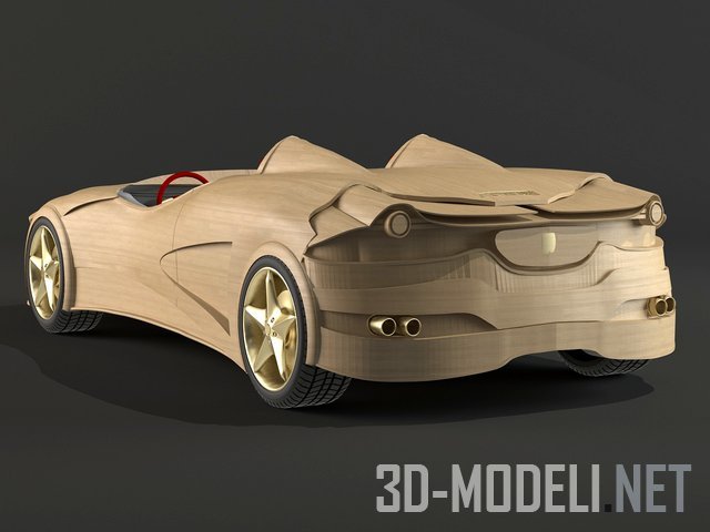 Вот такая вот 3д-модель фанерной Ferrari. Не забудьте взять с собой морилку и олифу в поездку. И избегайте дождя! Текстуры есть, материалы для Vray.