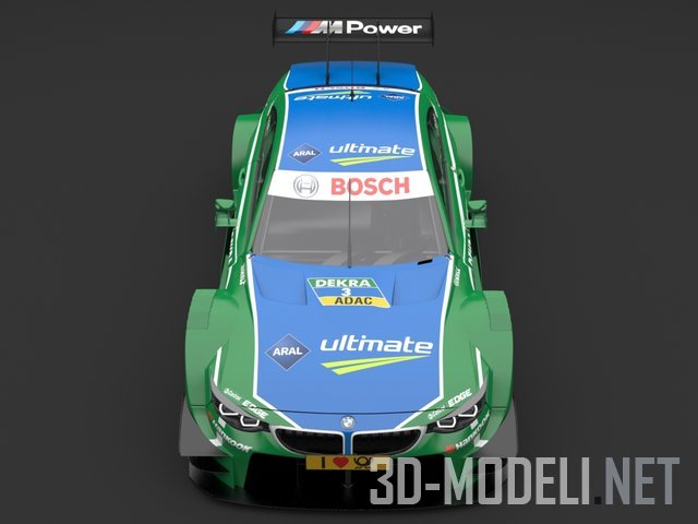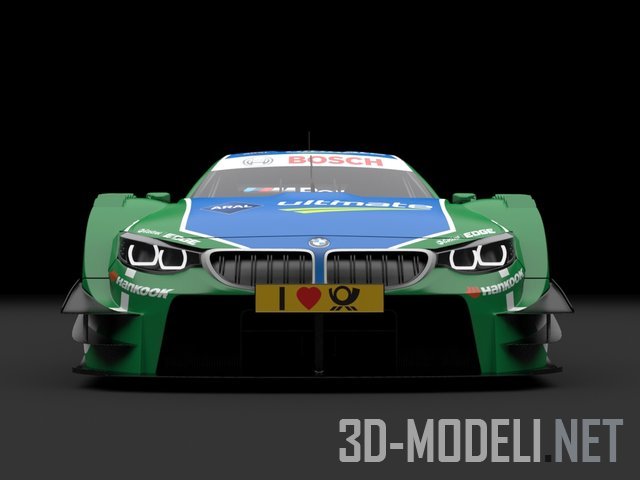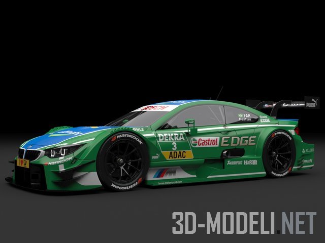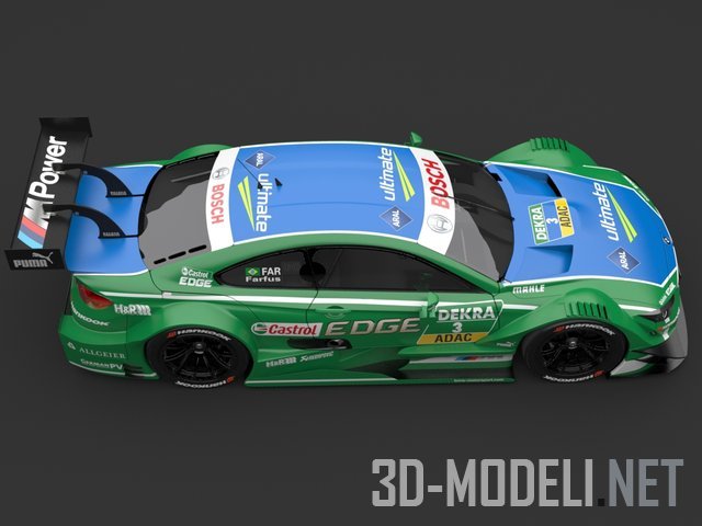 Реалистичная 3D-модель гоночного автомобиля BMW M4 DTM Farfus, 2014 года выпуска, на котором гонщики немецкой команды выиграли многочисленные трофеи.