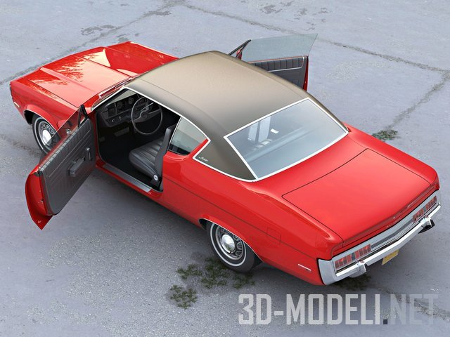 Прекрасная трехмерная копия американского ретро автомобиля AMC Matador Coupe (1972 года выпуска) с отлично выполненным интерьером салона. Это авто выпускалось компанией из США - American Motors Corporation. Как обычно, в моделях такого класса используется качественная сетка с прямоугольными полигонами, отдельные детали и хорошая проработка узлов. 3D-модель этого винтажного авто поставляется в нескольких популярных 3д-форматах, в т.ч. и для Cinema 4D. В комплекте есть текстуры (и файлы для MacOS).