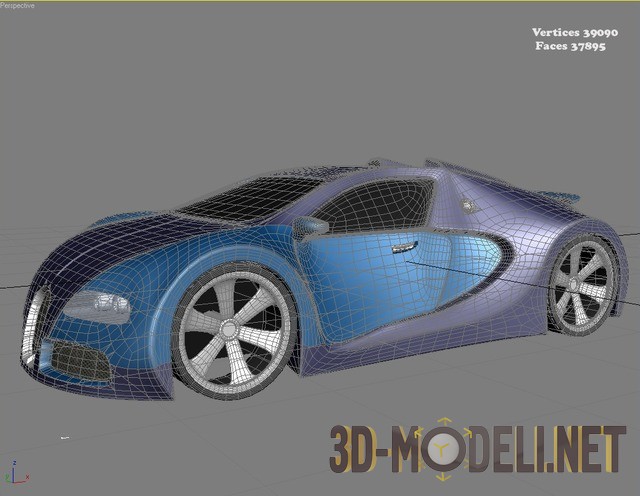 Первостатейная 3D-модель спортивного автомобиля Bugatti Veyron Arahno, предназначенного как для городских «покатушек», так и для серьезных «стритрейсерских» заездов. Если кто не знает, в реальной жизни данный болид стоит около 1 млн вечнозеленых и способен развивать скорость до 400 км/ч. Возвращаясь к описанию работы, заметим, что данная модель была сконструирована автором примерно за три дня и включила в себя около 38 тыс. полигонов.