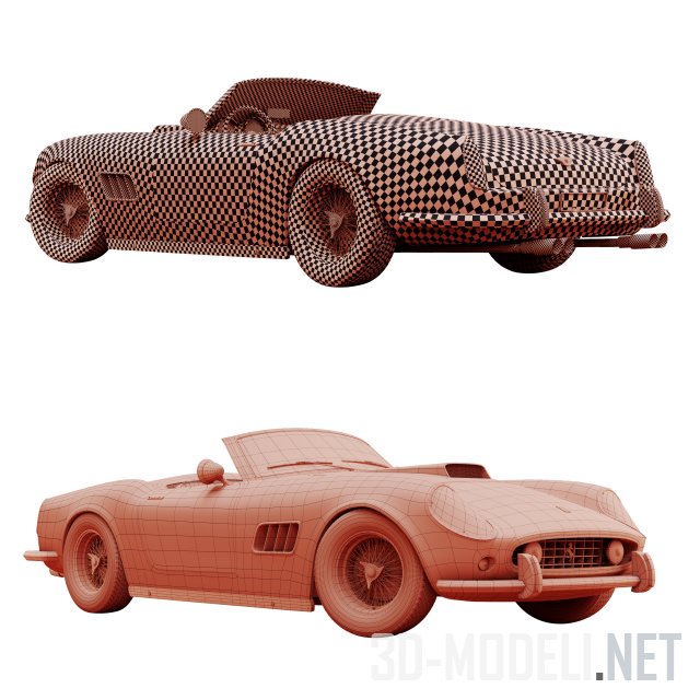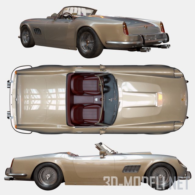 Произведение автомобильного искусства от итальянского концерна Ferrari, ретро-авто 250 GT SWB California Spyder. Это дорогой коллекционный автомобиль, который собирался на заказ ограниченными партиями. Реалистичная трехмерная модель Ferrari 250 GT SWB California Spyder станет украшением любого проекта.