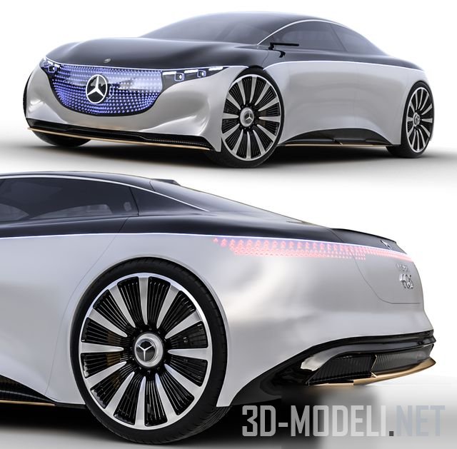 Электрический концепт-кар от Mercedes, модель Vision EQS. Кузов выполнен из стали, алюминия и углепластика, а особым эффектом от разработчиков можно считать светотехнику. Фары с голографическим эффектом, задние фонари образованы массивом из маленьких мерседесовских звездочек. Концептуальный интерьер автомобиля имеет отделку из переработанного пластика, искусственной кожи и ткани из микроволокна. Предусмотрен автопилот третьего уровня.