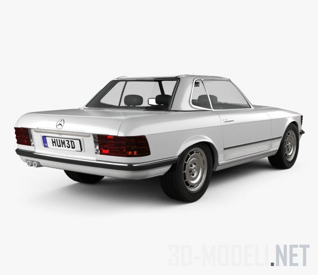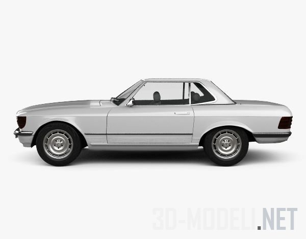 Двухместный автомобиль Mercedes-Benz SL-Class R107 coupe 1972. С кузовом типа купе. 3d-модель выполнена реалистично и детально, материалы настроены, текстуры не требуются.
