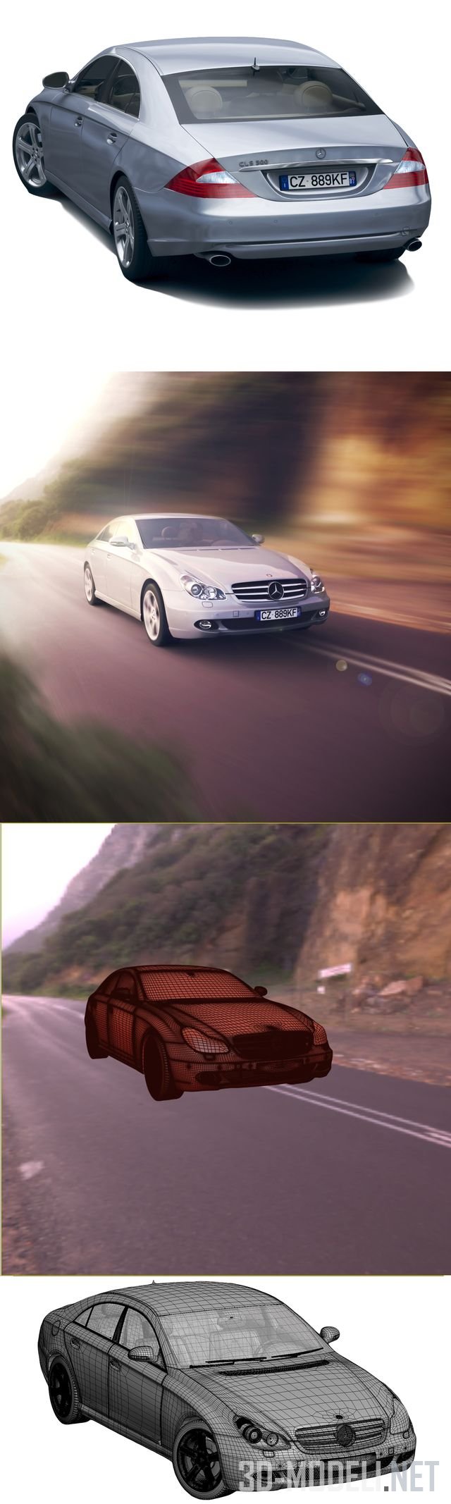 Высокодетализированная и качественная трехмерная модель современного автомобиля марки Mercedes Benz CLS 500. Детализация интерьера 50%. Архив содержит все материалы и текстуры.