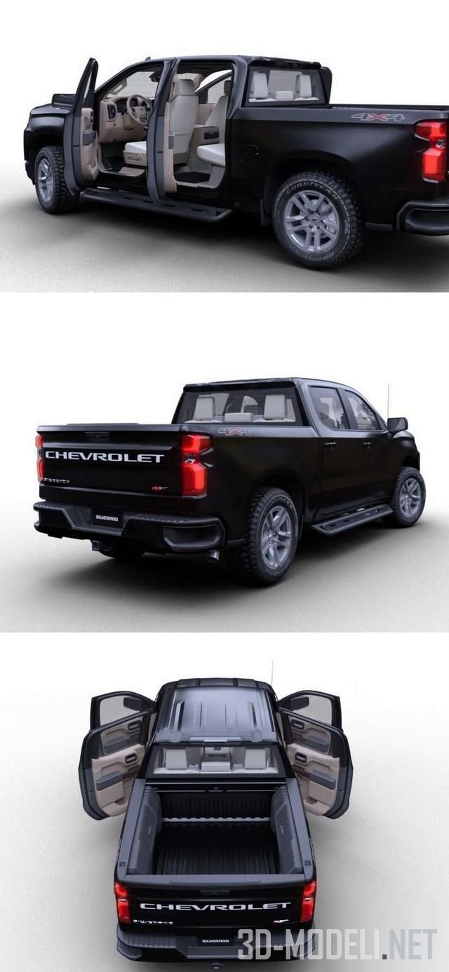Реалистичная трехмерная модель автомобиля Chevrolet Silverado Crew RST 2019. Это новый пикап с более агрессивным дизайном кузова, усовершенствованными технологиями и множеством различных вариантов двигателей.