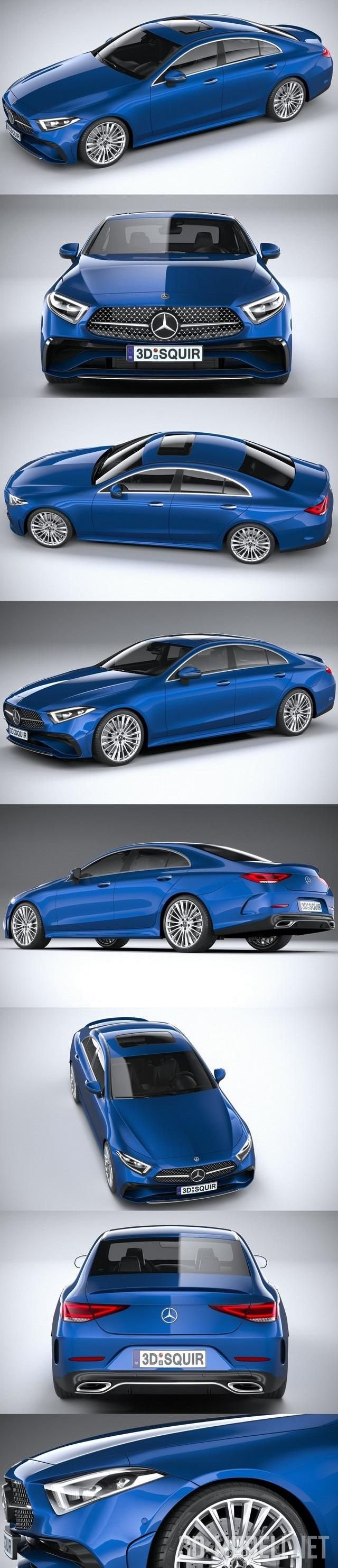 Седан с сильным и агрессивным дизайном, современный автомобиль Mercedes-Benz CLS 2022. Качественная модель, текстуры присутствуют.