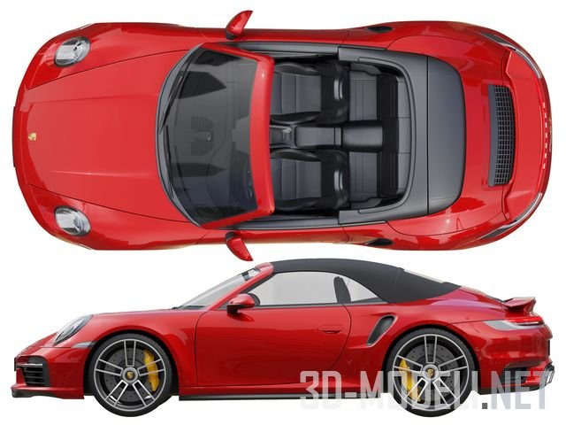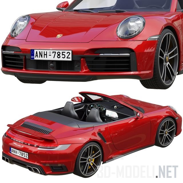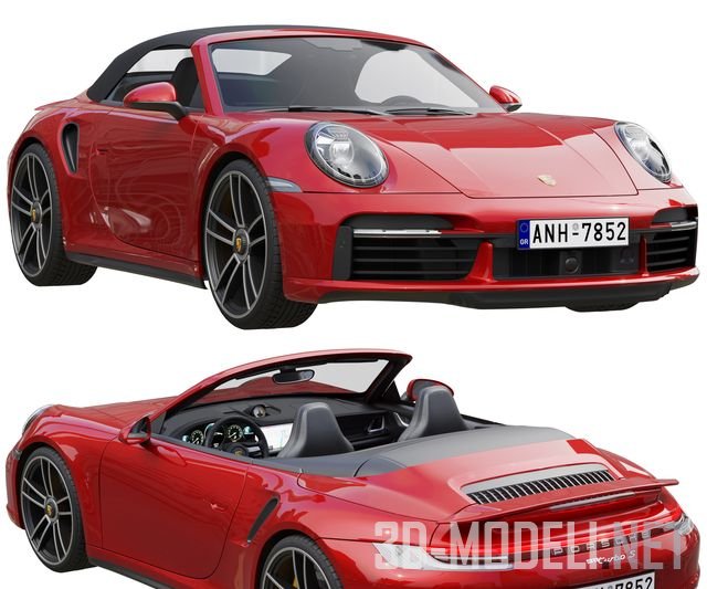 Современный престижный суперкар из Германии, Porsche 911 Turbo S Cabriolet 2021. Высококачественная, детализированная и реалистичная модель для проектов класса люкс.