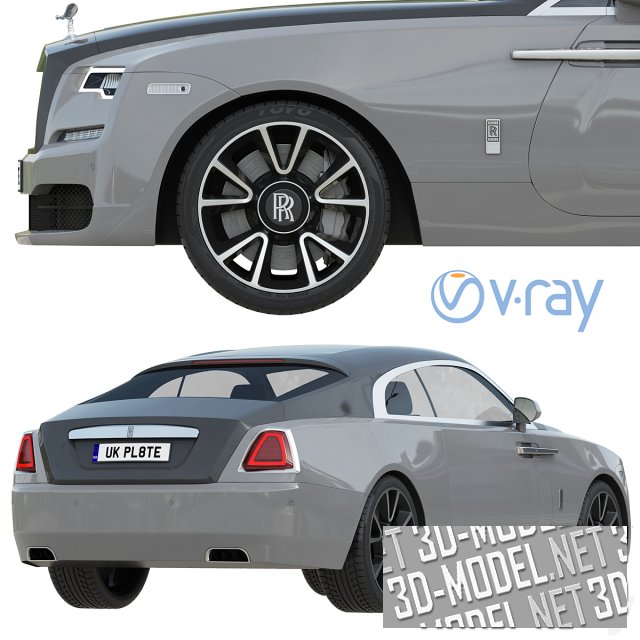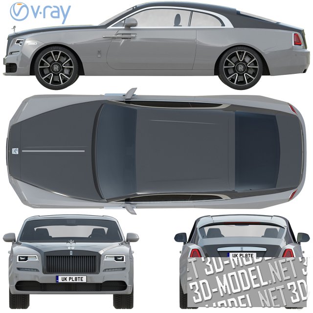 Четырехместный купе представительского класса Rolls-Royce Wraith. Нижняя часть кузова - светло-серая. Крышка капота, багажник и крыша - темно-серые. Строгое цветовое сочетание поддержано аристократичным силуэтом.