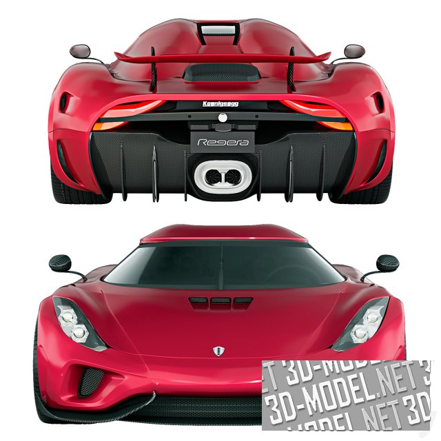 Гиперкар Koenigsegg Regera шведского производства. Автомобиль имеет стремительный силуэт, подчеркнутый красным цветом, огромные воздухозаборники на задних крыльях, выгнутое лобовое стекло, узкие, заходящие на крылья фары головного освещения с двумя круглыми фокусирующими линзами в каждом блоке. На переднем бампере массивный трапецеидальный воздухозаборник, прилегающий к крупному карбоновому сплитеру. Большой овальный патрубок выхлопной системы соседствует с диффузором и узкими светодиодными стоп-сигналами. Авто имеет динамичный и изысканный дизайн.