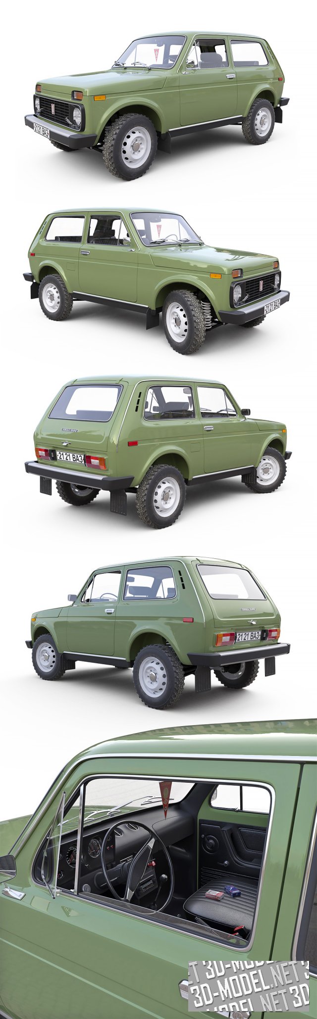 Автомобиль ВАЗ 2121 "Нива", широко известный как Lada Niva, - компактный внедорожник, ставший культовым автомобилем, известным своими внедорожными возможностями и прочным дизайном. Это реалистичная и высококачественная 3D-модель, точно представляющая оригинальный автомобиль.