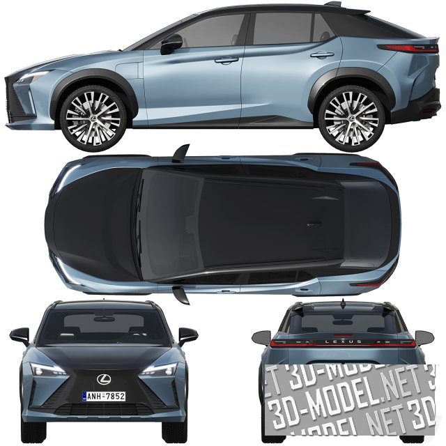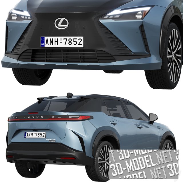 Современная электрическая версия кроссовера от Lexus, модель Lexus RZ 450e 2023. Автомобиль отличается впечатляющими техническими характеристиками и своим уникальным дизайном - с характерными острыми чертами оптики и "приталенной" передней заглушкой. Реалистичная трехмерная модель для использования в различных проектах.