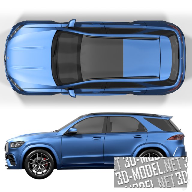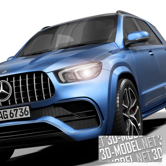 Современный спортивный внедорожник Mercedes - BENZ GLE63S AMG. Матовый синий кузов декорирован черными пластиковыми элементами и тонкими серебристыми сплиттерами. Радиаторная решетка с вертикальными серебристыми перемычками и черные воздухозаборники на переднем бампере формируют характерный для AMG спортивный образ автомобиля.