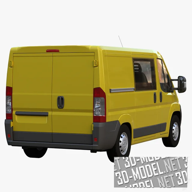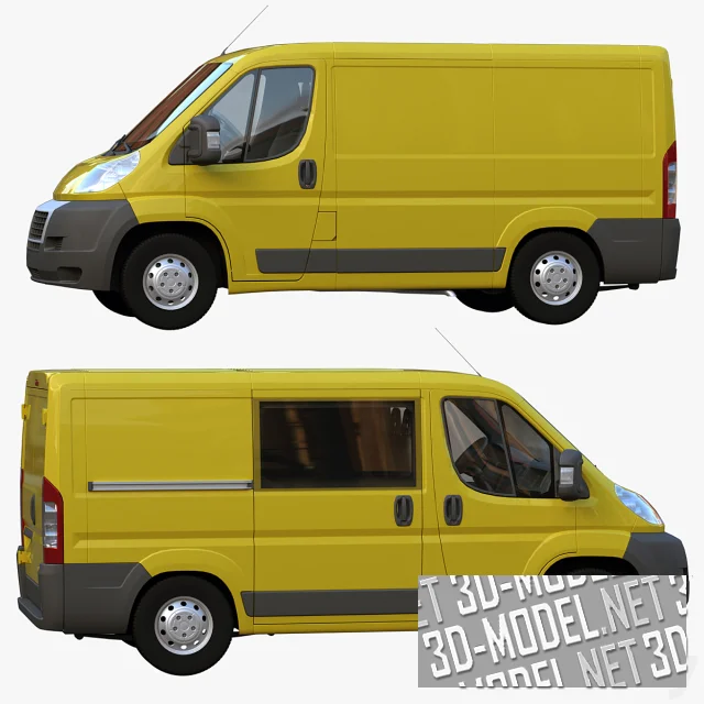 Небольшой современный цельнометаллический универсал, крытый городской грузовик с кузовом желтого цвета с черными пластиковыми элементами - L1H1. Отсутствие логотипов позволяет сравнить автомобиль сразу с несколькими типами: Peugeot Boxer, Fiat Ducato, Citroen jumper.