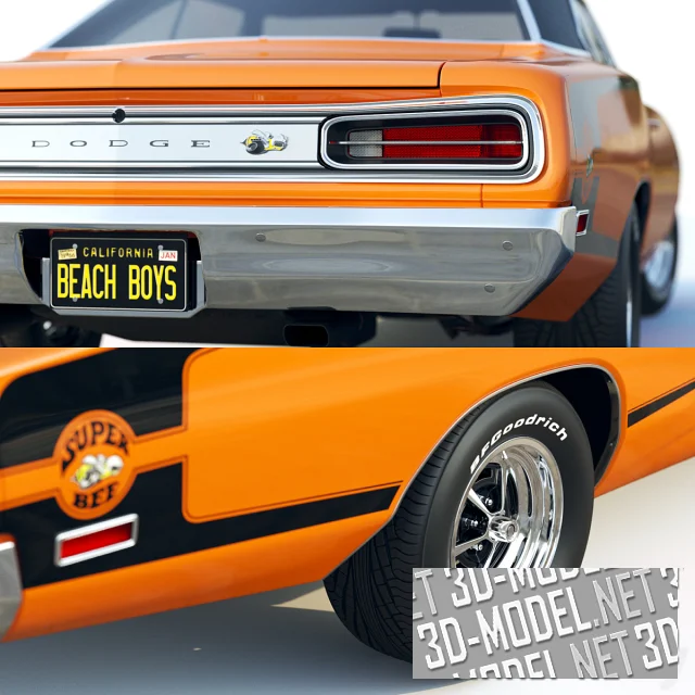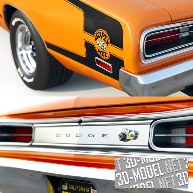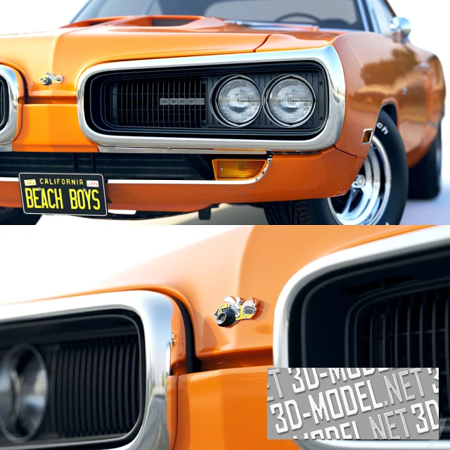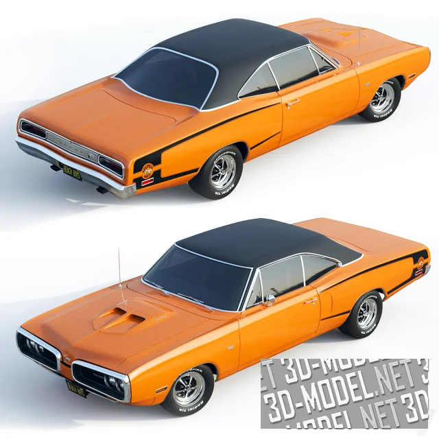 Это детализированная 3D-модель, воссозданная по оригинальному дизайну Dodge Super Bee 1970 года. Подходит для визуализаций, игр, анимации и любых проектов, где требуется реалистичный классический автомобиль эпохи muscle car. Поддерживается рендеринг в Corona и V-Ray.