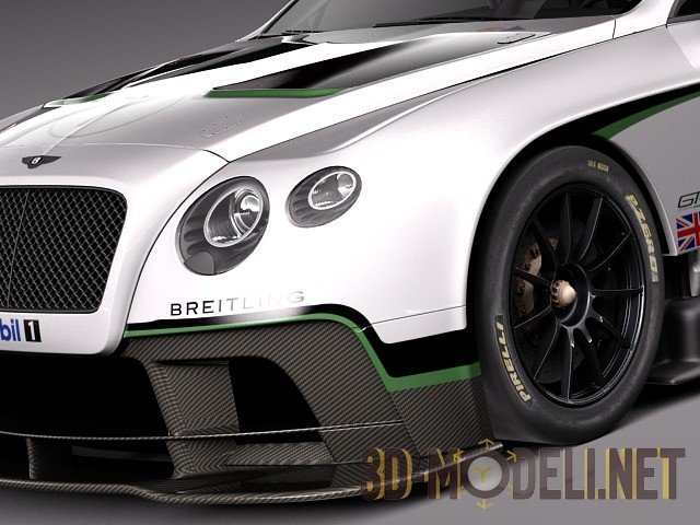 Реалистичная 3D-модель спортивного варианта автомобиля Bentley Continental GT3 2014 со спойлером, декалями и прочими атрибутами. Модель имеет прекрасную детализацию, проработанный интерьер салона со спортивным трубчатым каркасом. Поставляется во множестве популярных 3D-форматах и со всеми необходимыми текстурами.