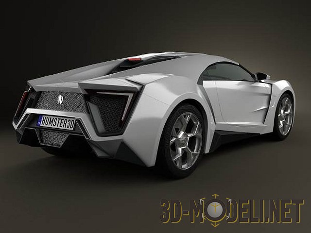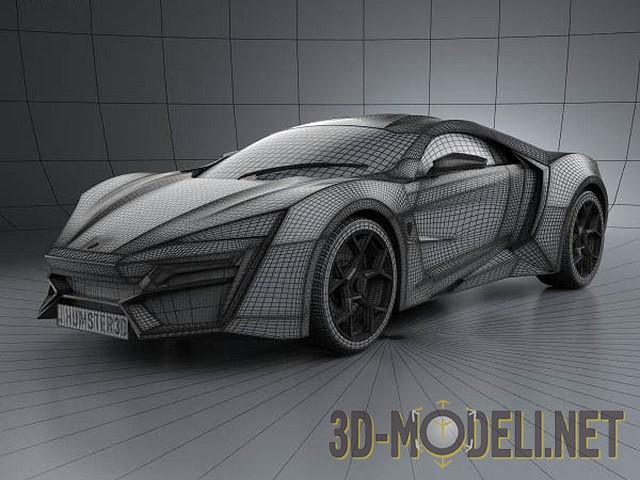 3D-модель суперкара W-Motors Lykan Hypersport 2012. Этот роскошный спортивный автомобиль известен тем, что засветился в фильме Форсаж 7 - им владел принц в Арабских Эмиратах.
