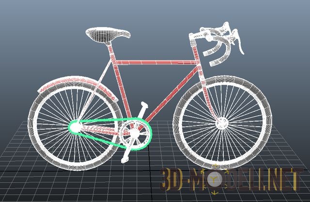 Красный велосипед. Спортивный руль сделан в виде двух загнутых ручек, классическая рама, цепь, педали, седло: все элементы выполнены с достоверностью реальных классических моделей велосипедов.