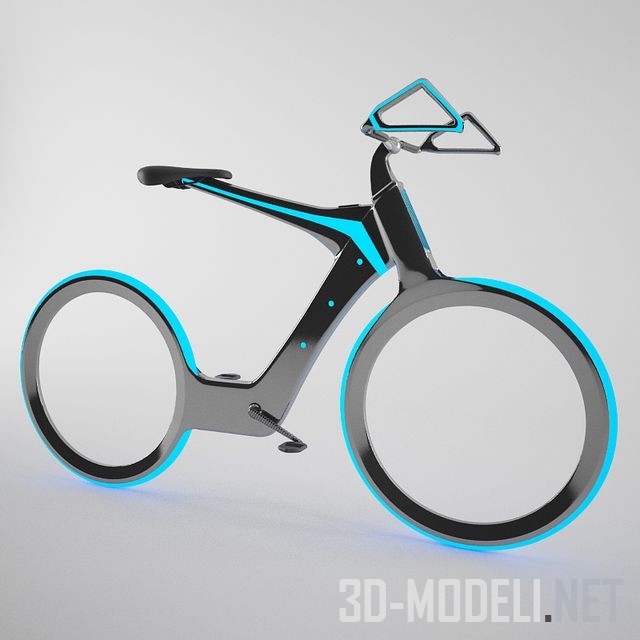 Концепт велосипеда будущего на монолитной карбоновой раме. Сочетания современных линий силуэта и технологий, черного глянца и светящегося голубого, оригинальная форма руля и колеса без спиц – набор средств, позволяющих попытаться заглянуть в будущее этого популярного транспорта.