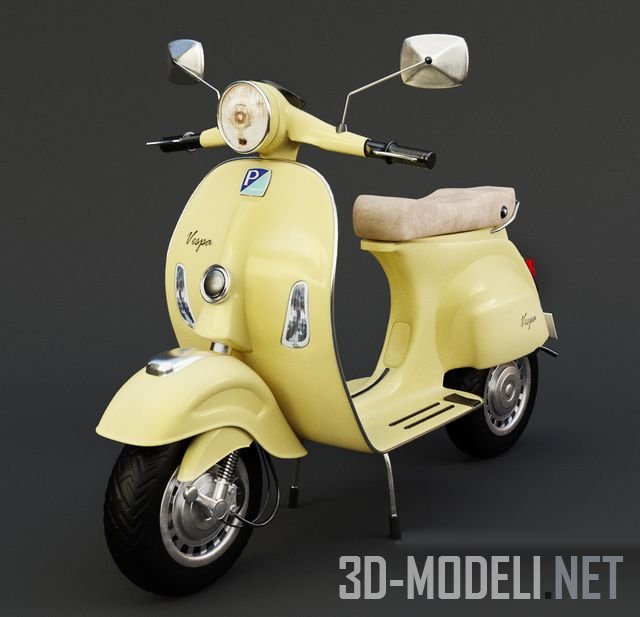 Высокого качества модель культового мотоцикла Vespa. Агрегат желтого цвета. Архив содержит 3ds max 2014, файл в формате obj. Материалы Corona.