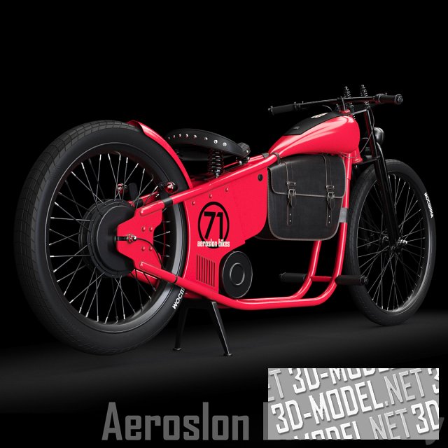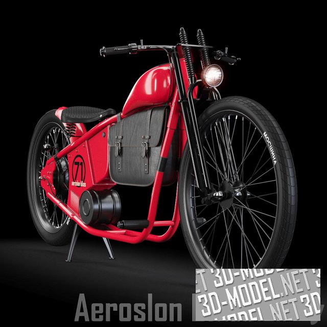 Современный кастомный электро-велосипед в ретро-стиле HD 1975 от мастерской Aeroslon Bikes. Байк стилизован под легкий классический мотоцикл-боббер с красной рамой и «баком», крупным черным седлом, кожаным «портфелем» под баком. Современная начинка (литий-ионная батарея, электро-двигатель, средства контроля и электроника) деликатно интегрирована и не видна с первого взгляда.