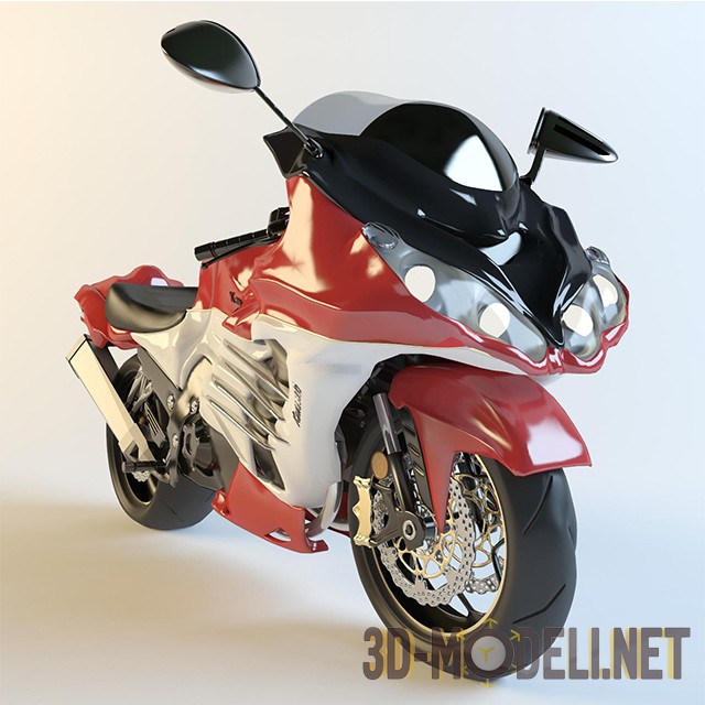 Качественная 3D модель спортивного мотоцикла фирмы Kawasaki. В комплекте есть текстуры в высоком качестве, материалы настроены для Vray рендера.