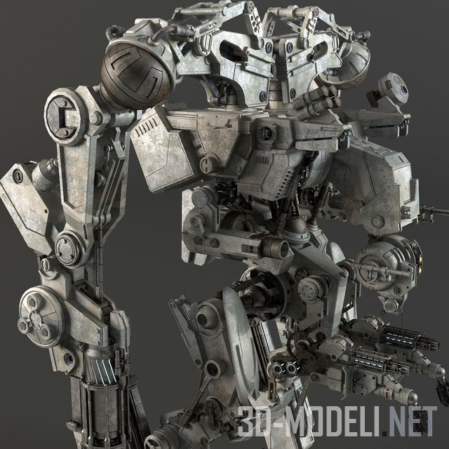 Великолепная, детальная 3D модель боевого робота в формате Hi-Poly для фотореалистичных Sci-Fi визуализаций, создания заставок, роликов, кино- и видео-продукции. Модель имеет настроенные Vray-материалы, текстуры высокого разрешения и поставляется в нескольких 3d-форматах. Готова для использования и рендеров.