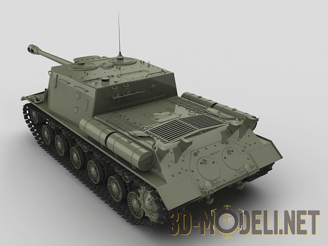 3D-модель советской, тяжелой самоходно-артиллерийской установки (САУ) ИСУ-122С, которая активно использовалась как мощное штурмовое оружие и истребитель вражеских танков, во времена Великой Отечественной войны.