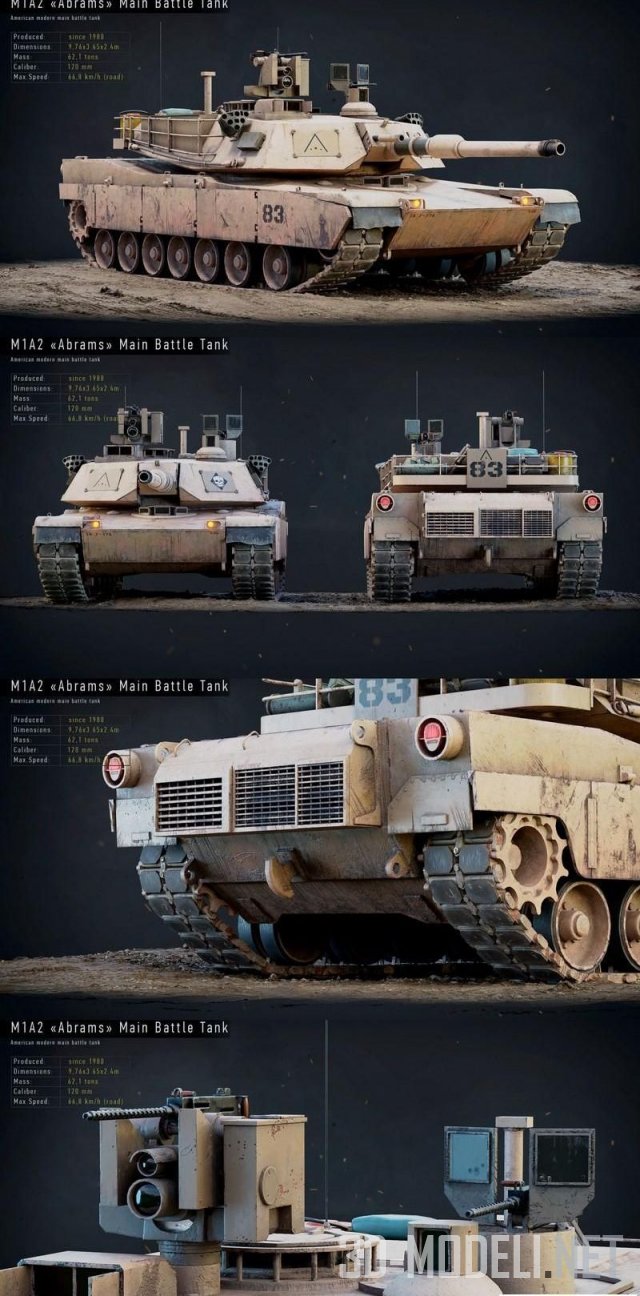 Игровая модель M1A2 Abrams, является основным боевым танком США. Тяжелый танк, серийно выпускается с 1980 года. Текстуры в формате PBR, файлы 3ds max. fbx, obj находятся в архиве.