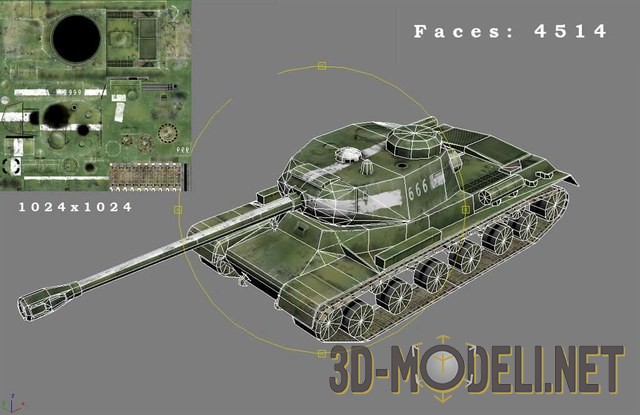 Первостатейная, Low-Poly (низкополигональная) 3D-модель тяжеловесного танка ИС-2, времен Второй мировой. Конструкция содержит порядка 4,5 тыс. треугольников и может быть импортирована в любой тайтл военной тематики, например Company of Heroes. Оригинальная развертка высокого разрешения (1024x1024) входит в комплект поставки.