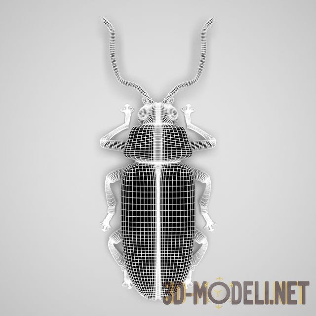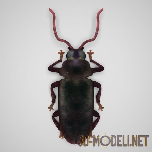 Жук-дровосек, крупное насекомое с продолговатым хитиновым панцирем. Модель хорошо подойдет для использования в специализированных проектах.