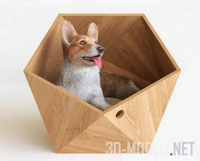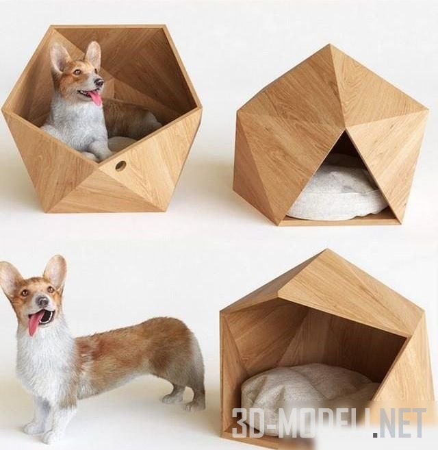 Симпатичная собака породы Вельш-корги пемброк, с домиком для домашних питомцев от японской фирмы Natural slow. Размер домика: 50 x 53 x 47 см.