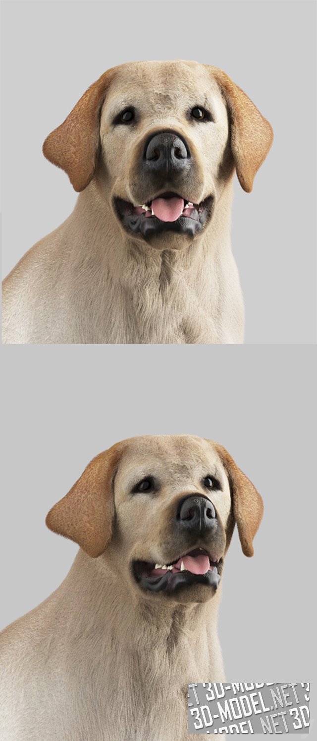 3d-модель выполнена детально и качественно, собака выглядит реалистично. Текстуры и материалы Vray находятся в архиве.
