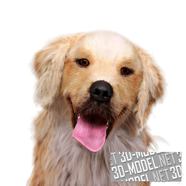 Реалистичная собака породы золотой ретривер. Дружелюбие и добродушие породы детально передает поза собаки. Качество трехмерной модели позволяет с успехом использовать ее в различных проектах.