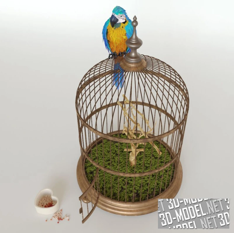 Попугай ара на клетке